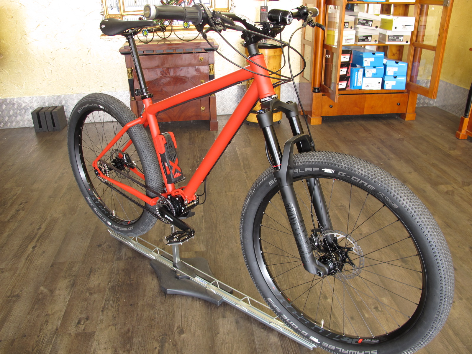 Die 2.8″ Walzen prägen das Outback in Gänze. Neben der hier gezeigten RockShox Forke wird es ab Herbst auch eine Tout Terrain Eigenkonstruktion in Form einer starren Carbon Gabel geben.